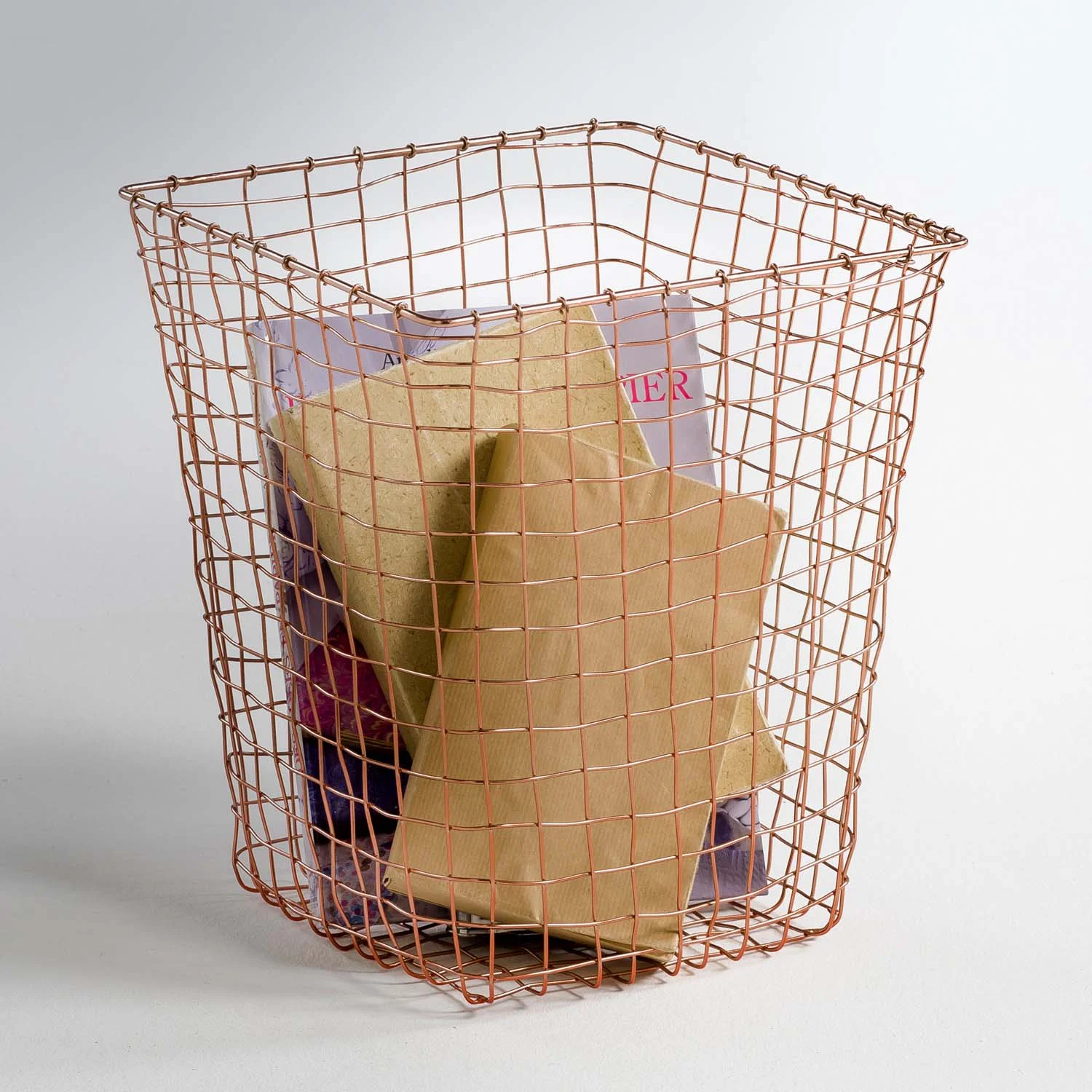 Too pretty to fill with rubbish, this copper receptacle would be perfect as a 'letters to be posted' out-tray in a home study, or filled with books beside your bed